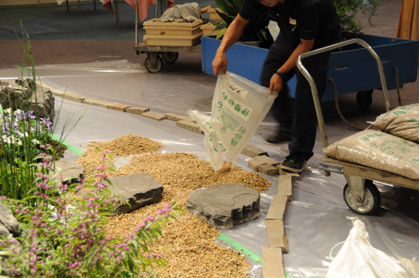 伊勢砂利を敷きます。